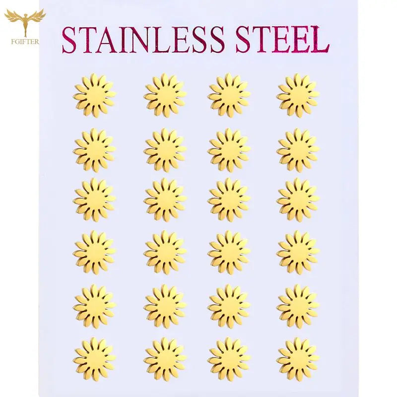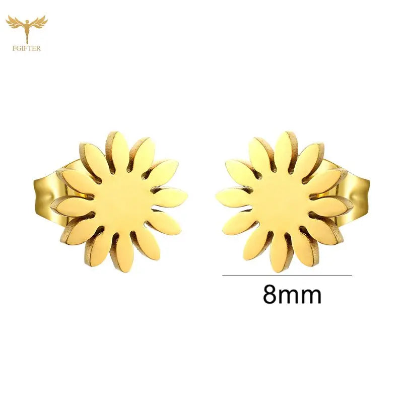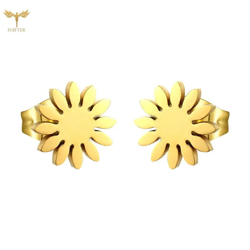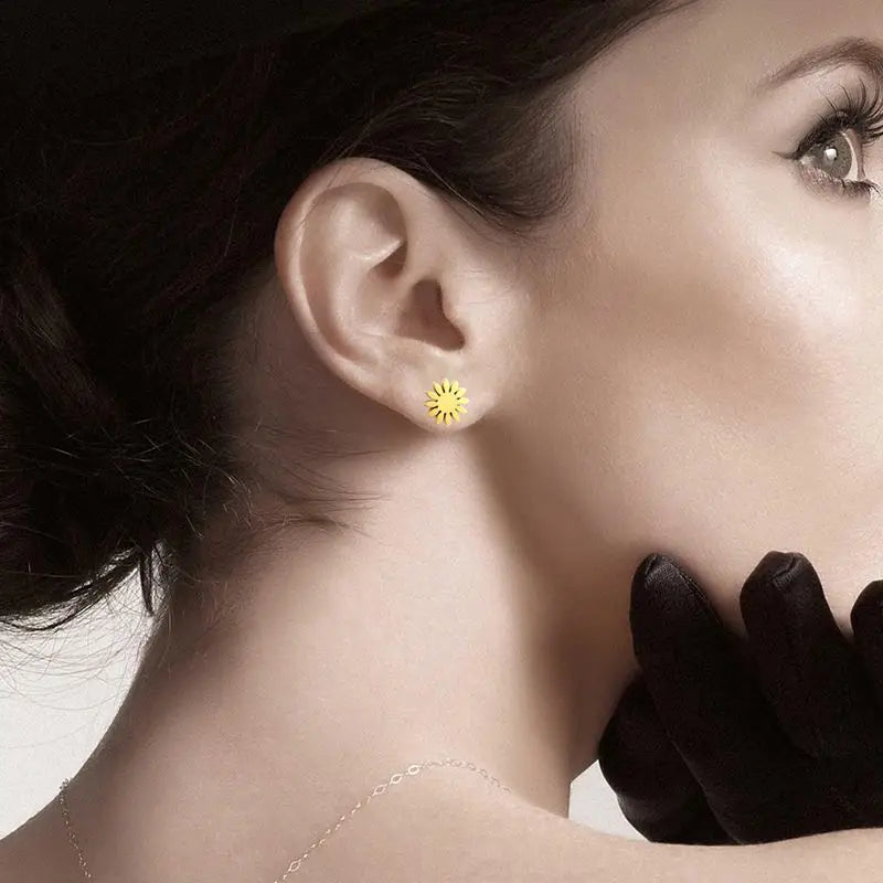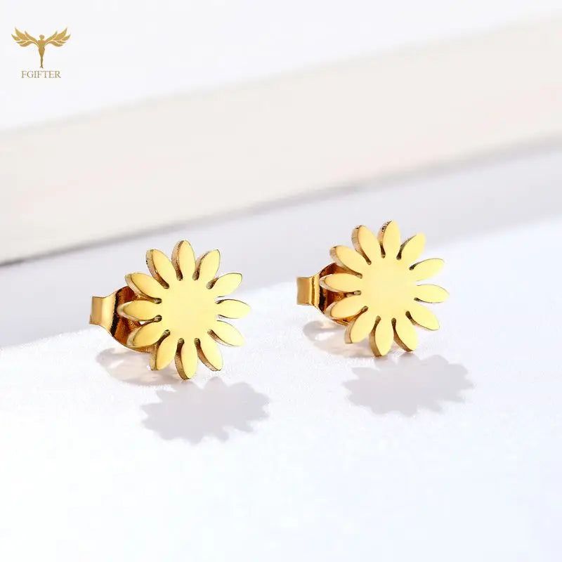 Sun Flower Stud Earrings – Kawaii Stainless Steel Jewelry for Women